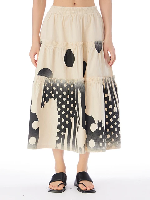 Print Patchwork Skirts Women Personality Fashion Loose All Match Mid-calf Skirts Korea Summer New Arrival