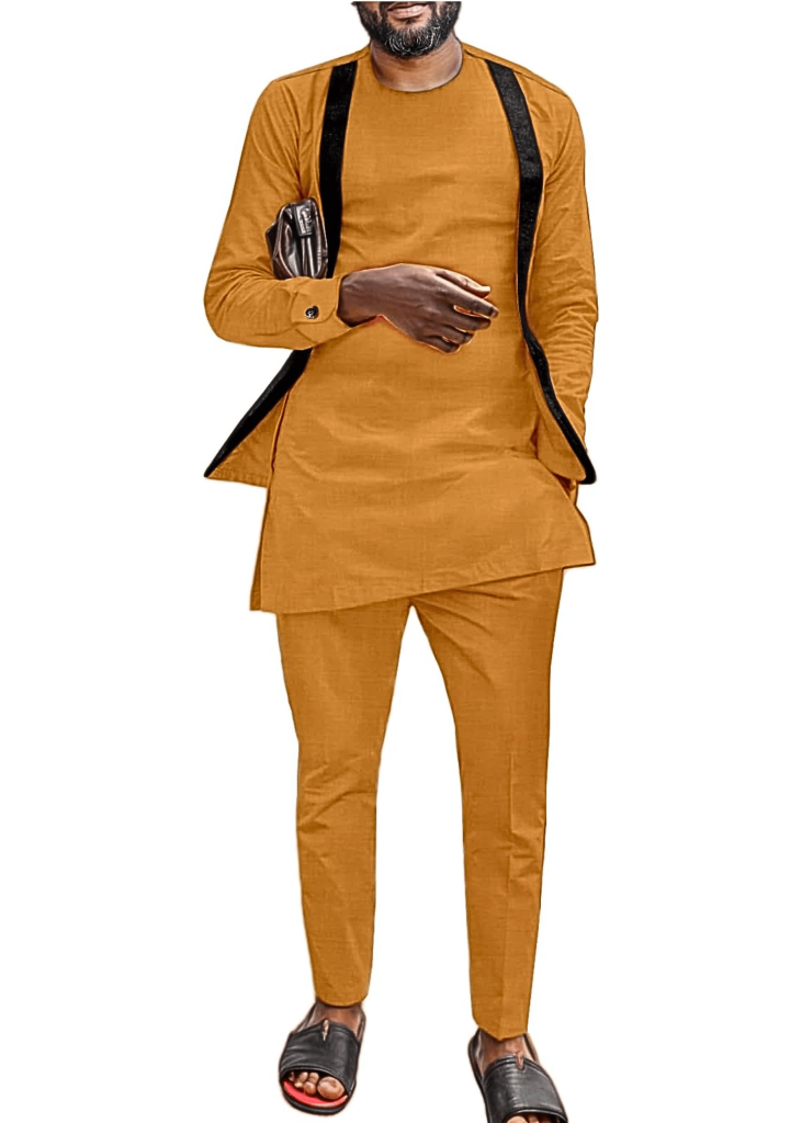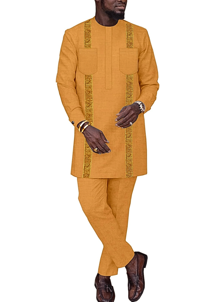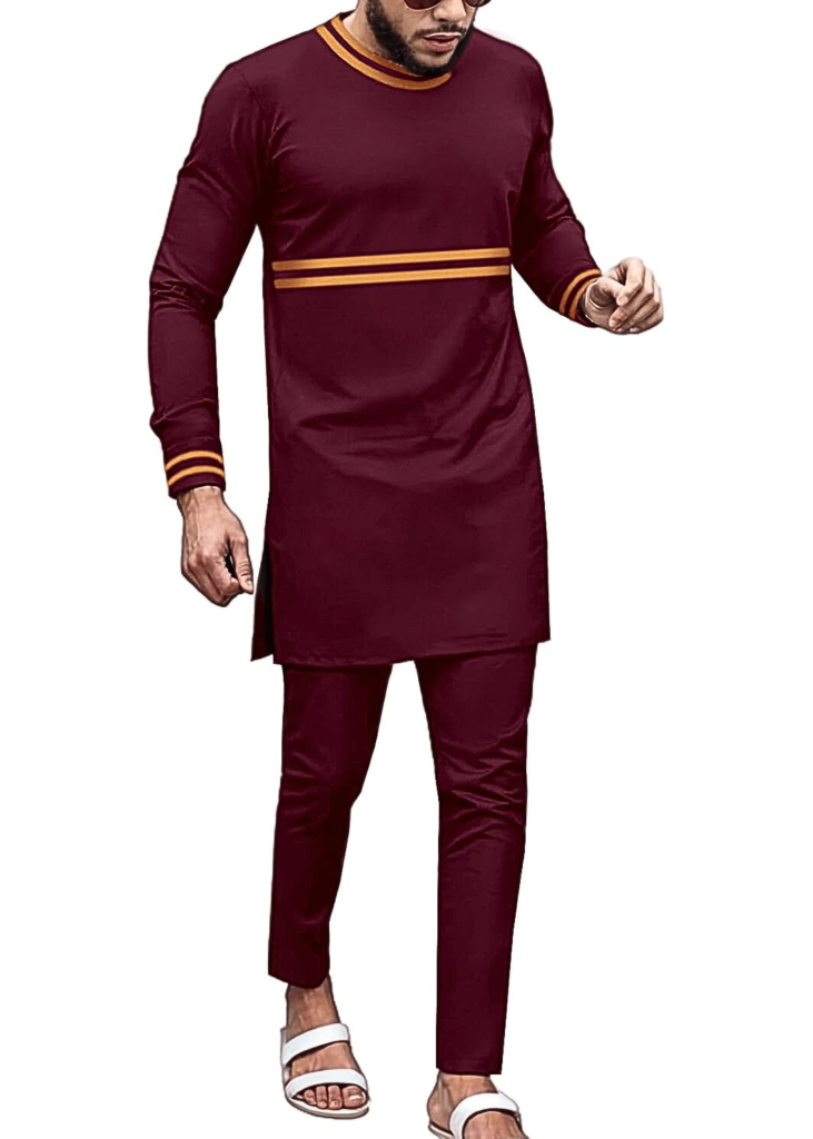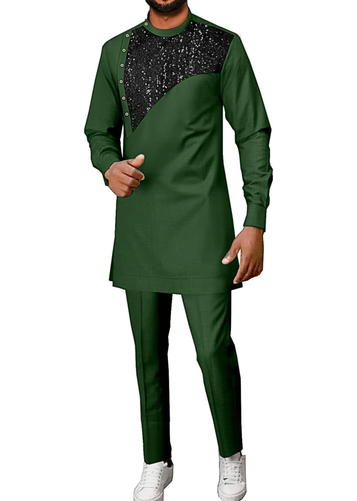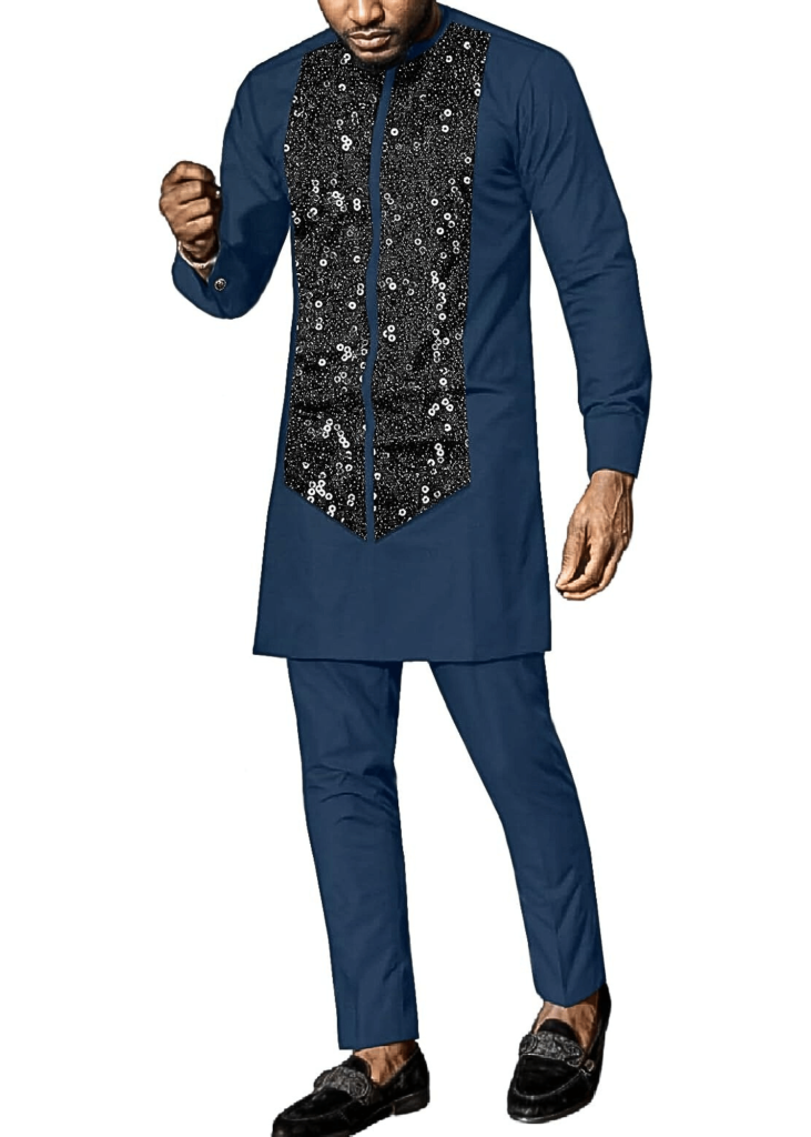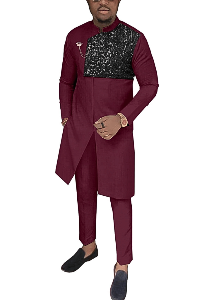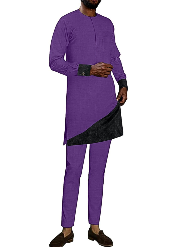 African Suit for Men Traditional Dashiki Clothing Splice Velvet Long Sleeve Casual Style 2 Piece Set
