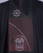 A Charcoal black anchor, wheel and sailor wire embroidery detail Agbada with Swarovski stones