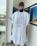 A Cocaine White dotted round and interwoven line embroidery agbada
