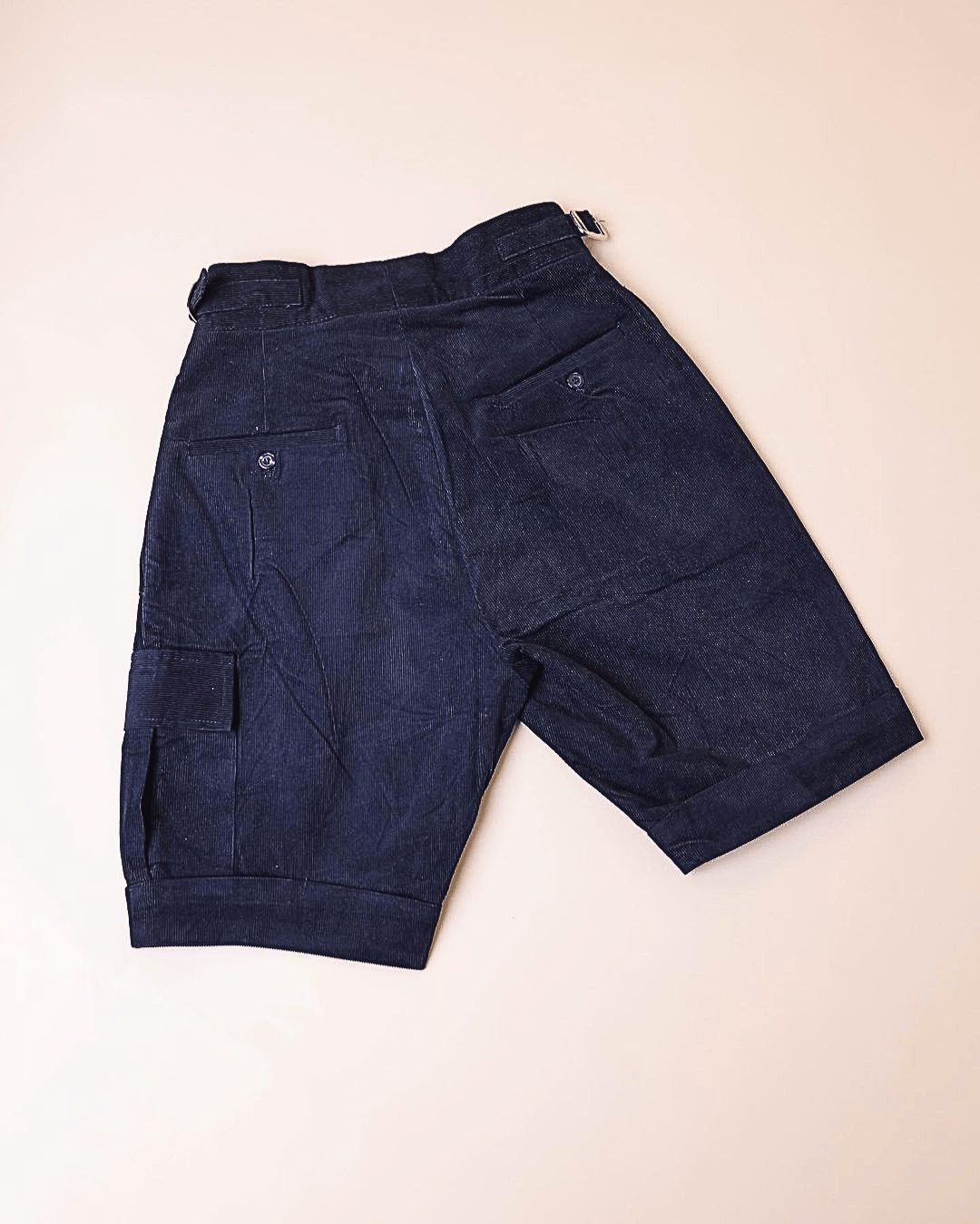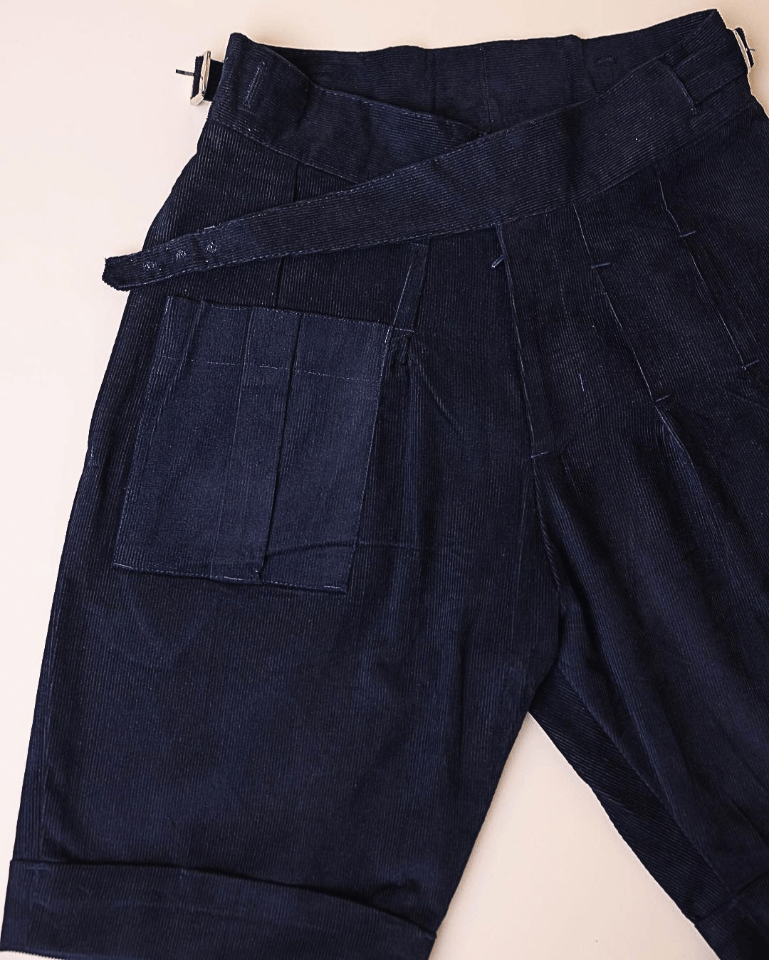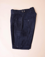 A “Gurkha” pant shorts with pleats, double side strap buckle, and combat patch pocket.