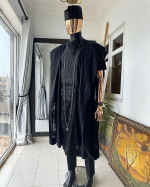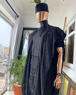 A Monochrome Charcoal black Voil connected embroidery Agbada