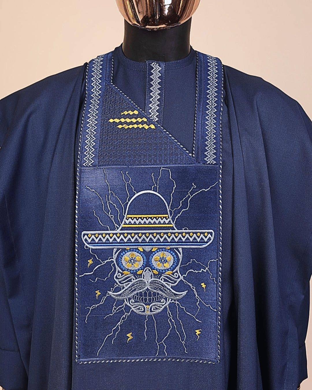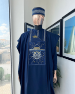 A Navy Blue, vexing demagogue metallic wire embroidery details agbada