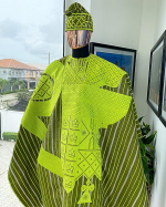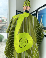 Be the first to review “A Stripe Lemon Green And Olive Green, Aso Oke Regal Agbada”