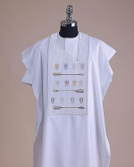 A white, sailors & anchor wire embroidery details agbada, short sleeve kaftan with Swarovski button & Sokoto