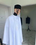 A White Dotted White embroidery Agbada & Handwoven Yoruba Hat