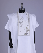 A White, smoke & gin gang embroidery details agbada, 3/4 sleeve kaftan, hat & Sokoto