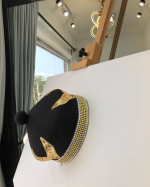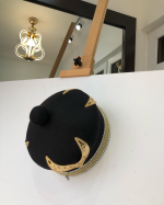 African IBO Black Royal Traditional Hat With Gold Swarovsky Adornment