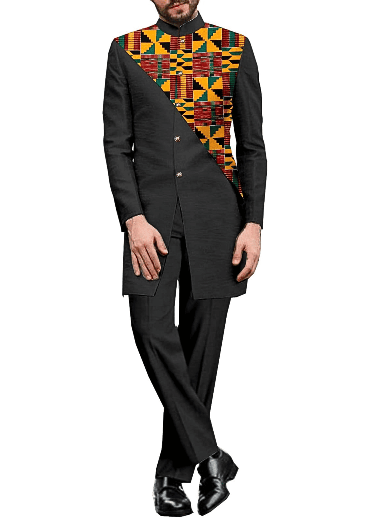 • STYLE — Fashion & Tribal Style.African Attire for Men,Formal and Designed. African men’s two piece suit.The pants belt is an elastic waistband with two slanted pockets for everyday use.This African Men’s Set with a simple and unique combination,highlight your unique temperament.