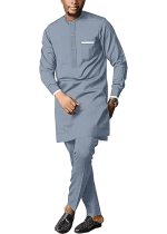 • CASUAL & SIMPLE STYLE — Fashion design dashiki suit for men, 2 piece set of african outfit, African men’s suit, formal and designed, long sleeve dashiki shirt and pants with Elastic waistband.