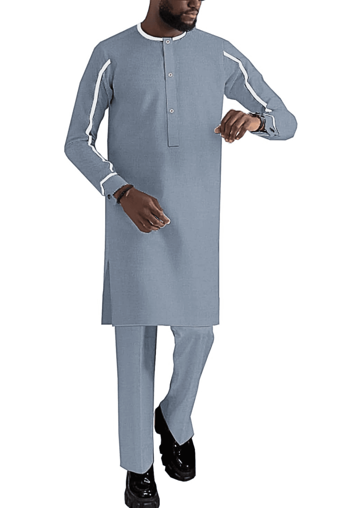 • CASUAL & SIMPLE STYLE — Fashion design dashiki suit for men, 2 piece set of african outfit, African men’s suit, formal and designed, long sleeve dashiki shirt and pants with Elastic waistband.