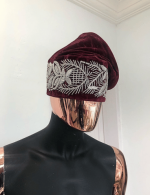 Burgundy & Silver Embroidery Yoruba Traditional Ide Cap