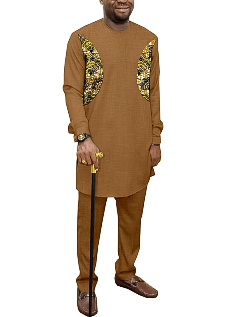 African Suit for Men Sets Dashiki Two-Pocket Long Sleeve African Mens Clothing Casual 2 Piece Sets