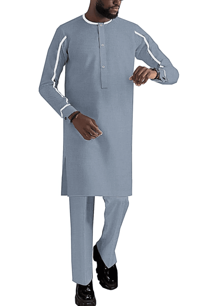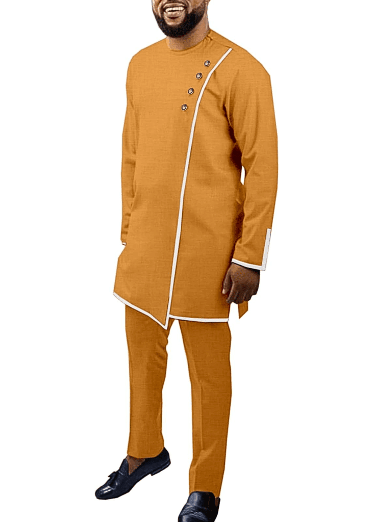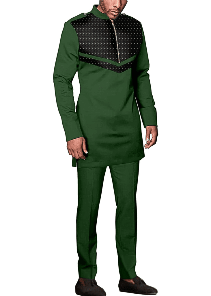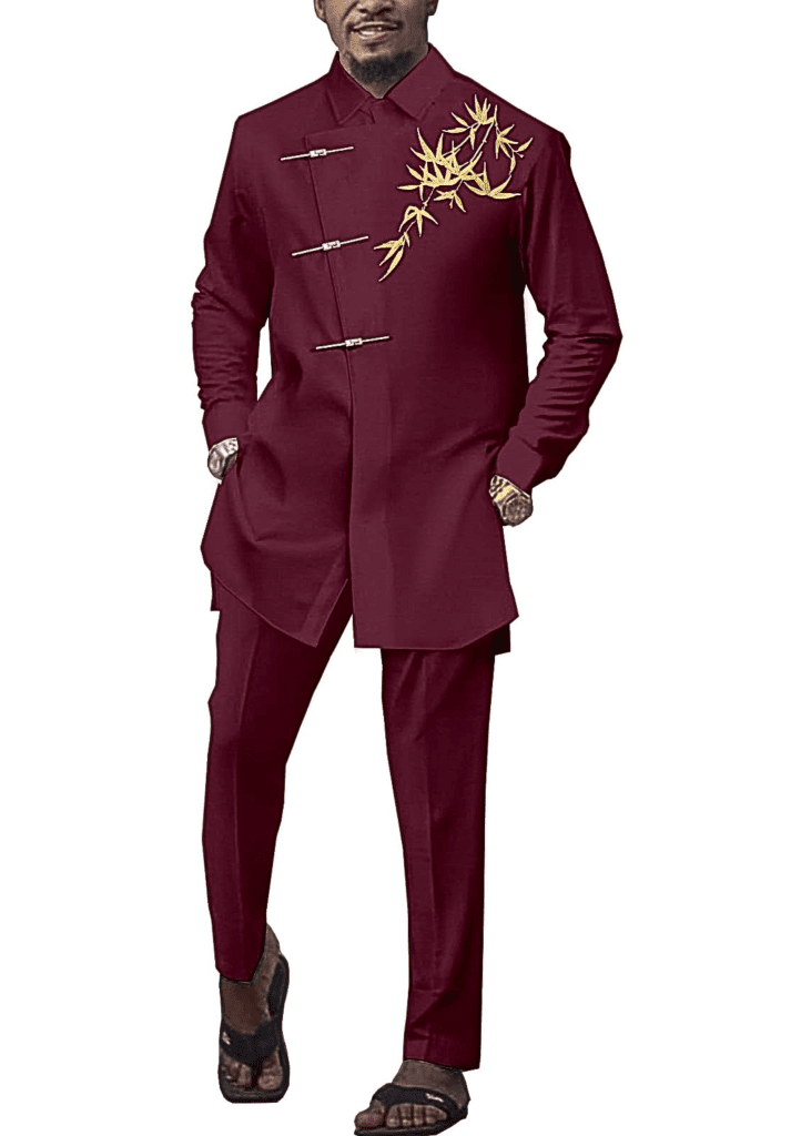 African Suit for Men Traditional Dashiki Nigerian Native Slim Fit Long Sleeve Clothing Casual 2 Piece Sets